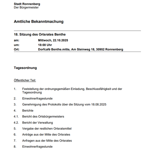 Diese Website bildet den temporären Stand eines kontinuierlichen Arbeitsprozesses ab. Obwohl bei der Zusammenstellung der auf dieser Website enthaltenen Inhalte und Services größte Sorgfalt und Kontrolle angewandt wurde, kann der Ortsrat für die Aktualität, Korrektheit, Vollständigkeit oder Qualität keine Gewähr übernehmen. Haftungsansprüche gegen den Ortsrat, die sich auf Schäden materieller oder ideeller Art beziehen, welche durch die Nutzung oder Nichtnutzung der dargebotenen Inhalte und Services oder durch die Nutzung fehlerhafter und unvollständiger Informationen verursacht wurden, sind grundsätzlich ausgeschlossen, sofern seitens des Ortsrates kein nachweislich vorsätzliches oder grob fahrlässiges Verschulden vorliegt. Wir behalten uns ausdrücklich vor, Änderungen der Inhalte und Services ohne gesonderte Ankündigung zu verändern, zu ergänzen, zu löschen oder das gesamte Angebot oder die Veröffentlichung zeitweise oder endgültig einzustellen. Alle Angebote sind freibleibend und unverbindlich.